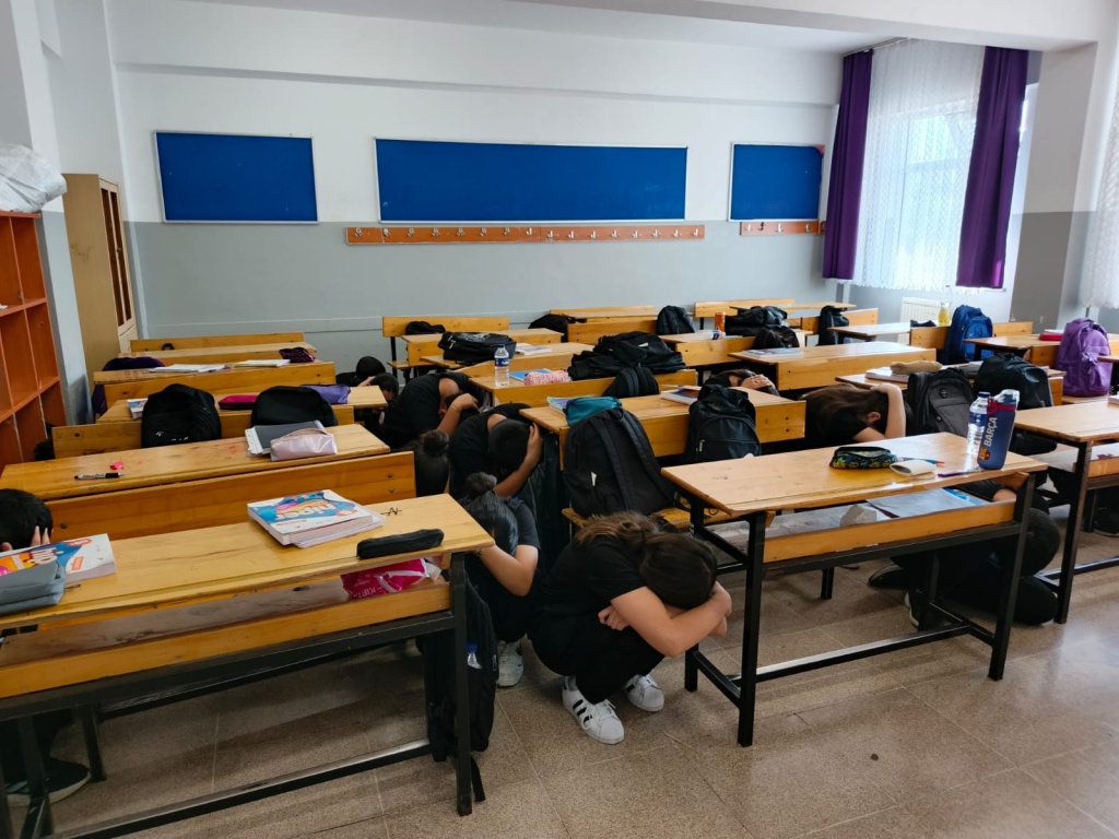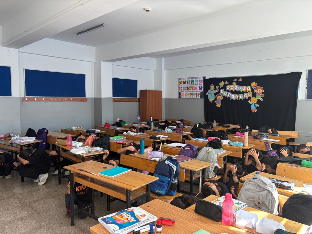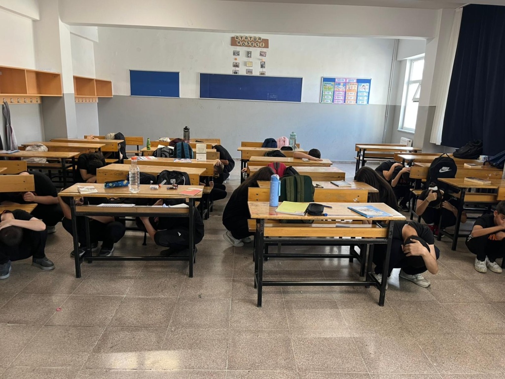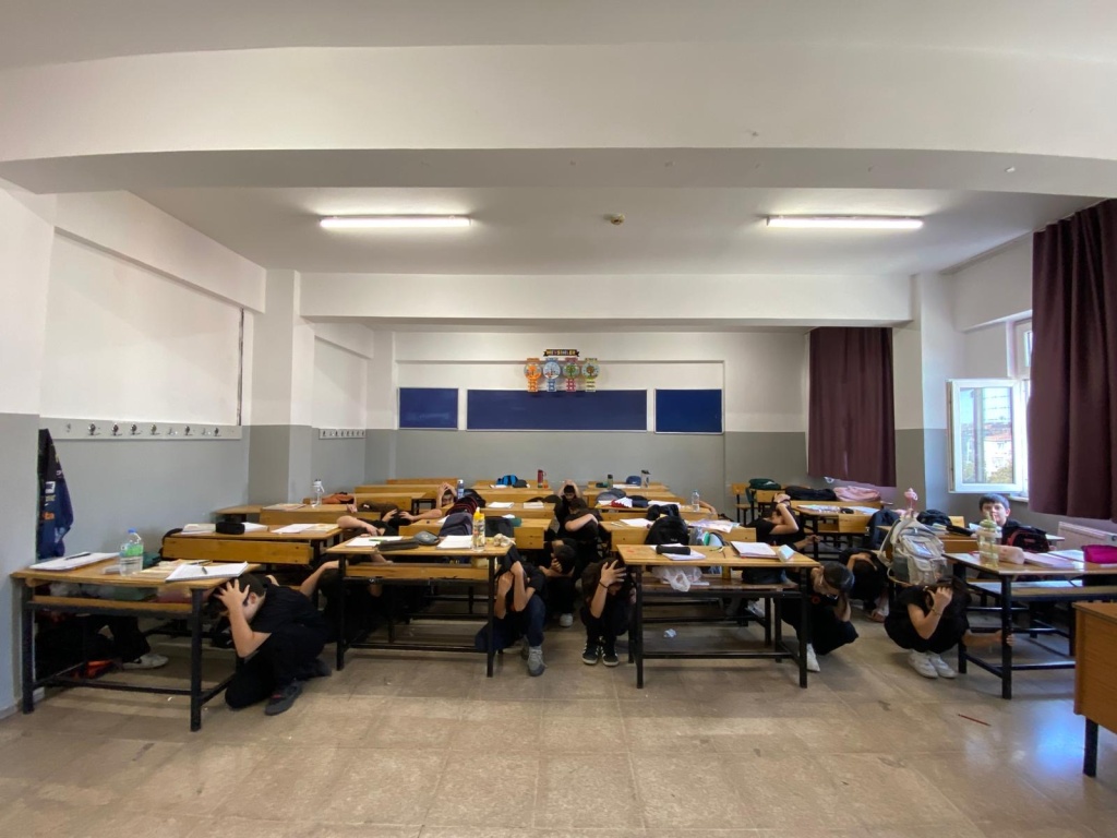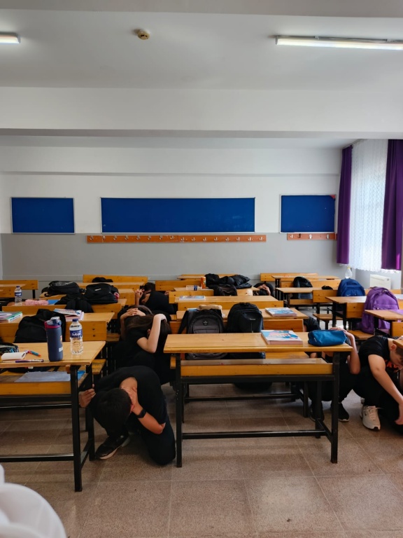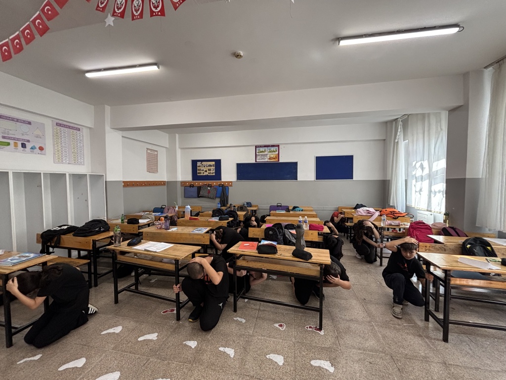 Deprem ile mücadele kapsamında 24.09.2025 tarihinde okulumuzun tüm sınıflarında ilgili videolar izletilip ÇÖK-KAPAN-TUTUN tatbikatı yapılmıştır.